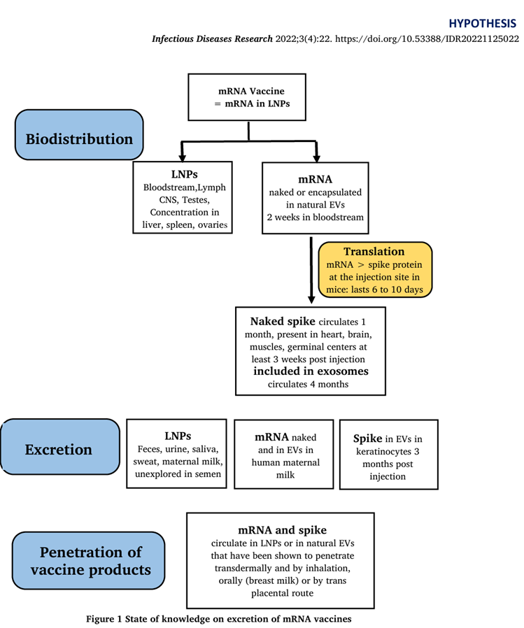 Eric Angerer: 1. Eine neue Studie aus Israel (https://www.gavinpublishers.com/article/view/detection-of-pfizer-biontech-messenger-rna-covid19-vaccine-in-human-blood-placenta-and-semen) weist bei 50 Prozent der „ungeimpften“ Schwangeren Pfizer-mRNA in Blut oder sogar Plazenta nach. Das ist wohl ein klares Indiz für Shedding. Der Begriff Shedding ist ja von der US-Behörde FDA definiert als Übertragung eines gentechnisch veränderten Organismus von einer behandelten Person auf eine unbehandelte. Es geht also um die Ausscheidung von Impfsubstanzen. Können Sie bitte grundlegend erklären, wie Shedding funktioniert. Welche Rolle spielen dabei die mRNA, die Spike-Proteine und Nanolipide?
