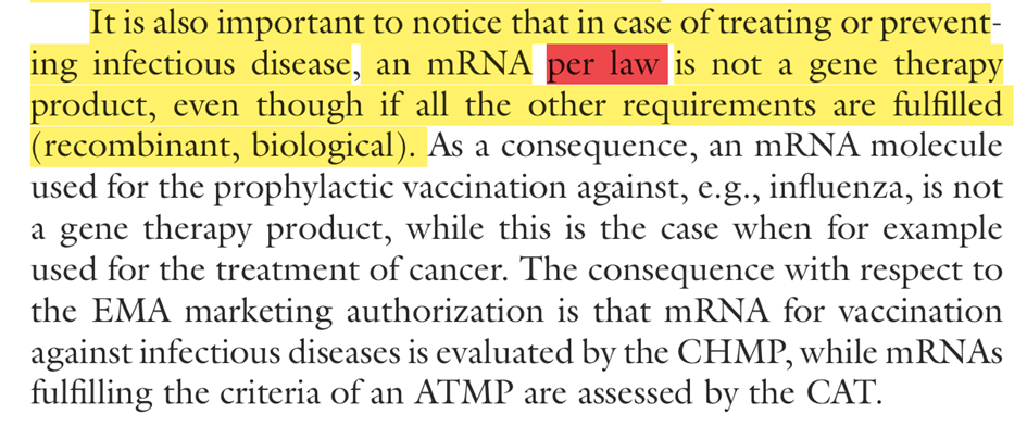 Die COVID-Injektionen sind nur juristisch Impfungen. Weder BioNTech noch das PEI haben bestritten, dass es sich bei mRNA-Injektionen um Gentherapien handelt. Das steht sogar in deren gemeinsamer Publikation: