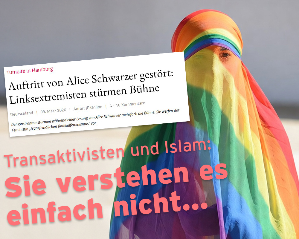 Oder weil das Kopftuch eben kein Symbol der Selbstbestimmung ist, sondern nur die andere Seite der sexistischen Medaille. Und nebenbei gesagt, noch nicht einmal vor Sexismus in Form von Gewalt und Missbrauch schützt, weil der Islam nun einmal die Gleichberechtigung der Geschlechter nicht im Programm bereithält. Alice Schwarzer hat das früh durchschaut, durchschaut aber noch nicht, wie radikal die Szene ist. Da kann sie keinen Blumentopf gewinnen. Vielleicht ist es für sie an der Zeit, sich andere Verbündete zu suchen und mit diesen – gewaltfrei und gesprächsbereit – über Gemeinsamkeiten und Unterschiede bei ihren Standpunkten zu diskutieren.